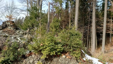 Dupa aproximativ o ora jumatate am ajuns la Stana Prislop aflata pe traseu nostru, mai departe de saua Prislop. Scutisem ceva drum! Aici am facut o mica pauza, am ridicat drona, am mancat fructe, ne-am bucurat de primele branduse din acest an, timide si firave. Dupa ce ne-am tras sufletul am plecat mai departe pe traseul dunga galbena care ajunge pana pe Leaota. Dar obiectivul nostru de astazi era Stana Albescu aflata pe muntele cu acelasi nume. Am mers pe poteca prin padure, uneori uscata, uneori cu noroi si cu cat urcam in altitudine, se facea mai rece. La un moment dat am auzit un zgomot si am vazut printre copaci un cocos de munte care fugea de noi. Nici pe acesta nu l-am prins in fotografie .