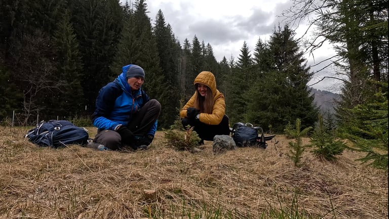 Sâmbăta dinaintea Paștelui ne-a găsit pe poteca forestieră de pe Portăreasa, în apropiere de Câmpulung. Deși prognoza meteo nu era prea favorabilă, am vrut să profităm de această zi liberă pentru a o petrece în natură și pentru a vedea ce face brăduțul plantat în urmă cu două săptămâni. Așa că am plecat cu voie bună într-o drumeție în care natura a decis să-și arate toate fețele. A nins, a ieșit soarele, apoi a venit grindina — un adevărat spectacol al vremii de munte.
